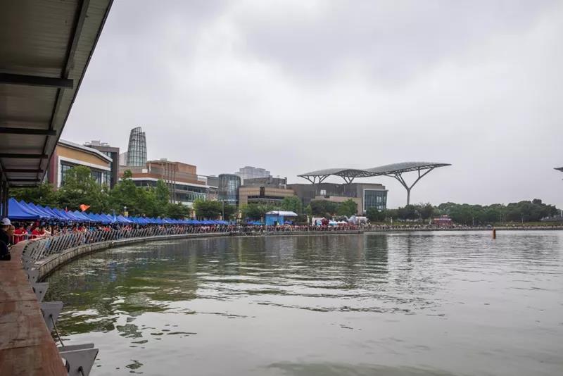 現場觀眾圍湖觀戰,吶喊聲、鼓聲、加油聲響成一片