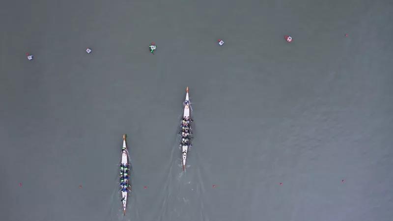 二十余支龍舟隊雷鳴擊鼓、飛漿逐浪